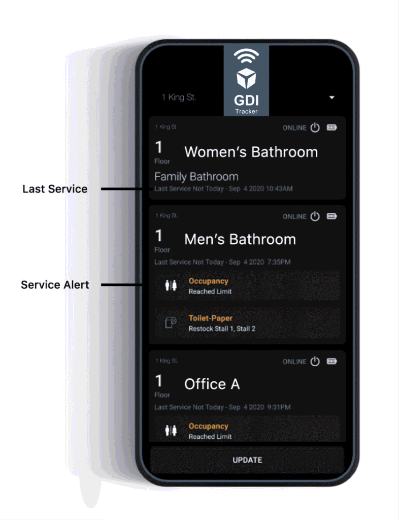 Depending on the client’s investment appetite, IH Services can support IoT sensor technology and transform restroom maintenance from scheduled routines into real-time, data-driven service through: